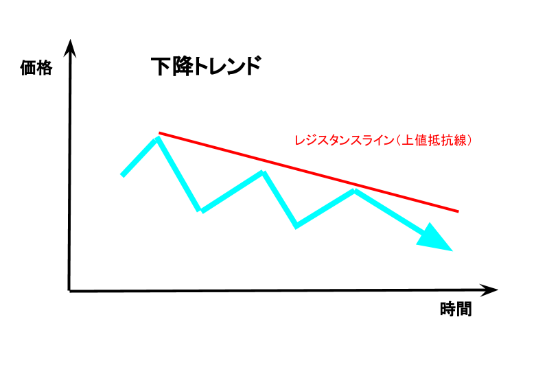 下降トレンドのときは、価格が下がり続けているということです。